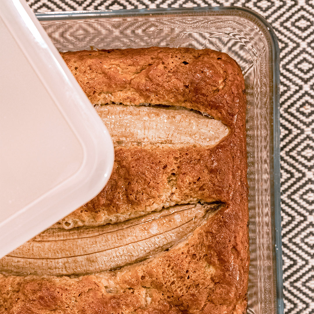 Cut the remaining banana in half, place it on the cake. Sprinkle with brown sugar.