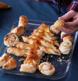 Cut the dough into the shape of a tree: first form a triangle and finish with the shape of the trunk at the bottom (collect the leftover pasta to make balls to cook at the same time)