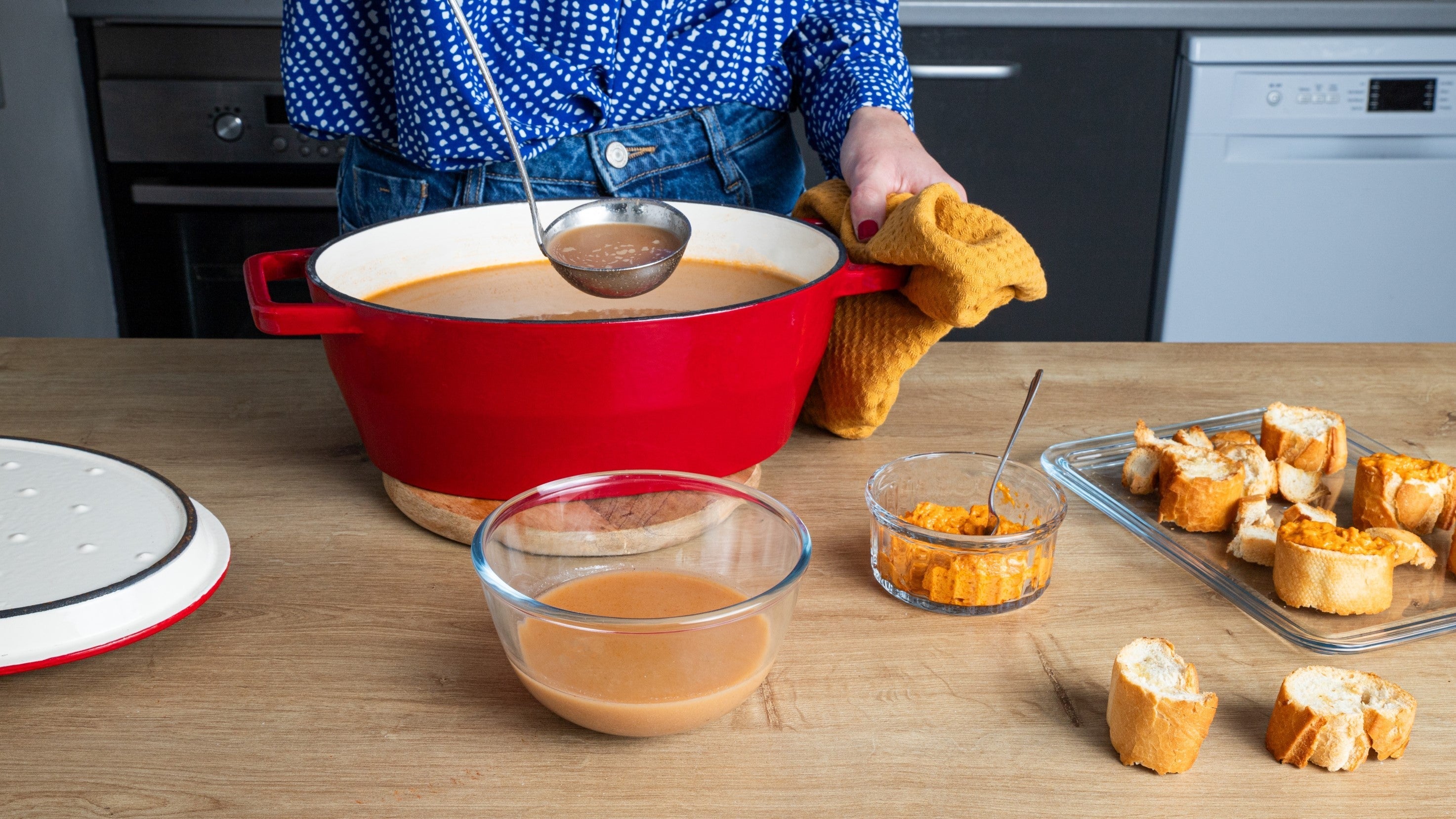 Add chopped garlic and onion, then thyme, salt, pepper, bay leaf, parsley and saffron to add flavor to the broth; finish with a good tomato paste and a little white wine.
