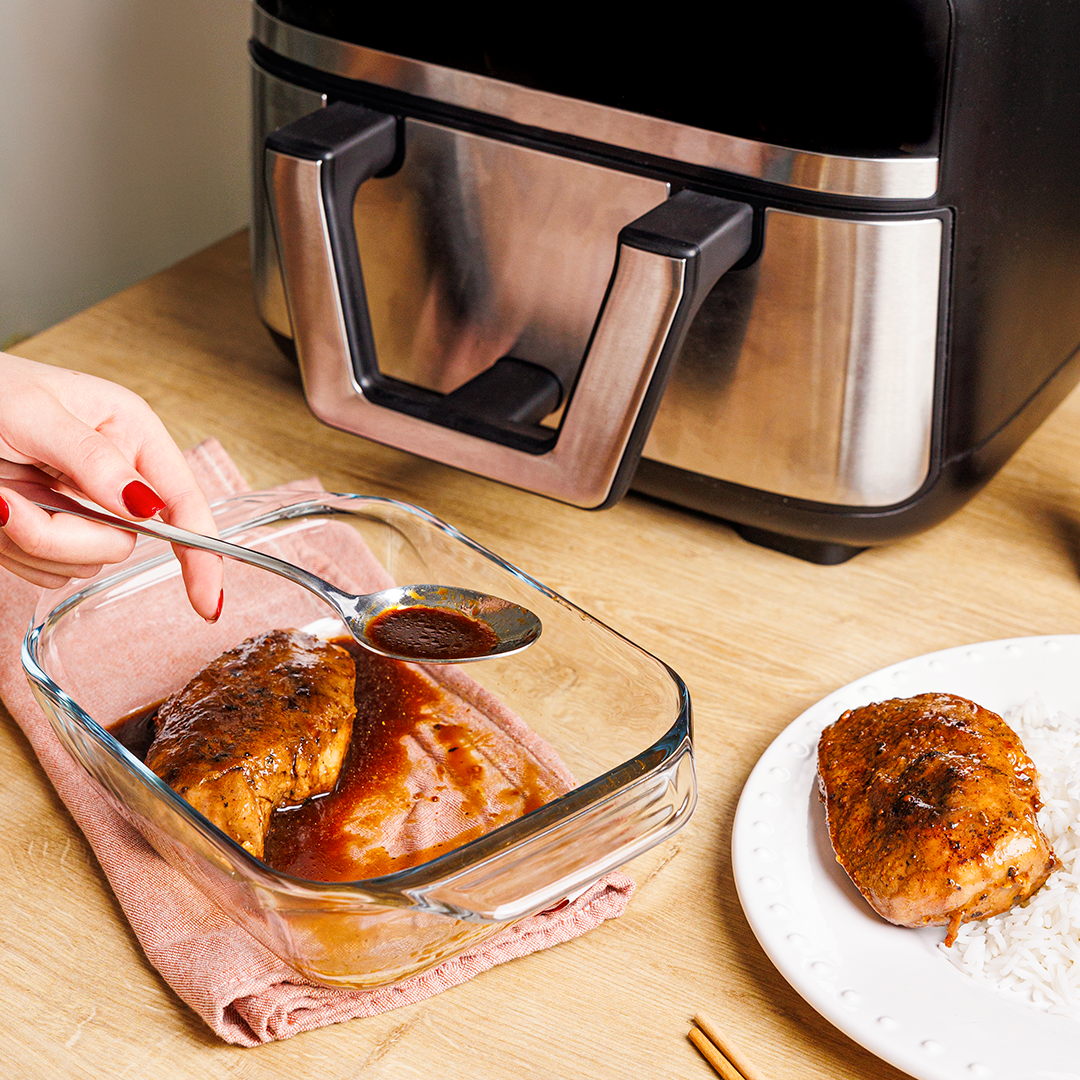 Place the chicken pieces in the Air Fryer and cook for 9 minutes at 180°C (350°F)