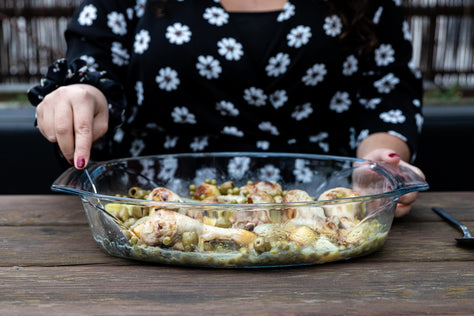 Wash and cut the tomatoes into quarters. Place them in a baking dish. Add a drizzle of oil and Provence herbs.