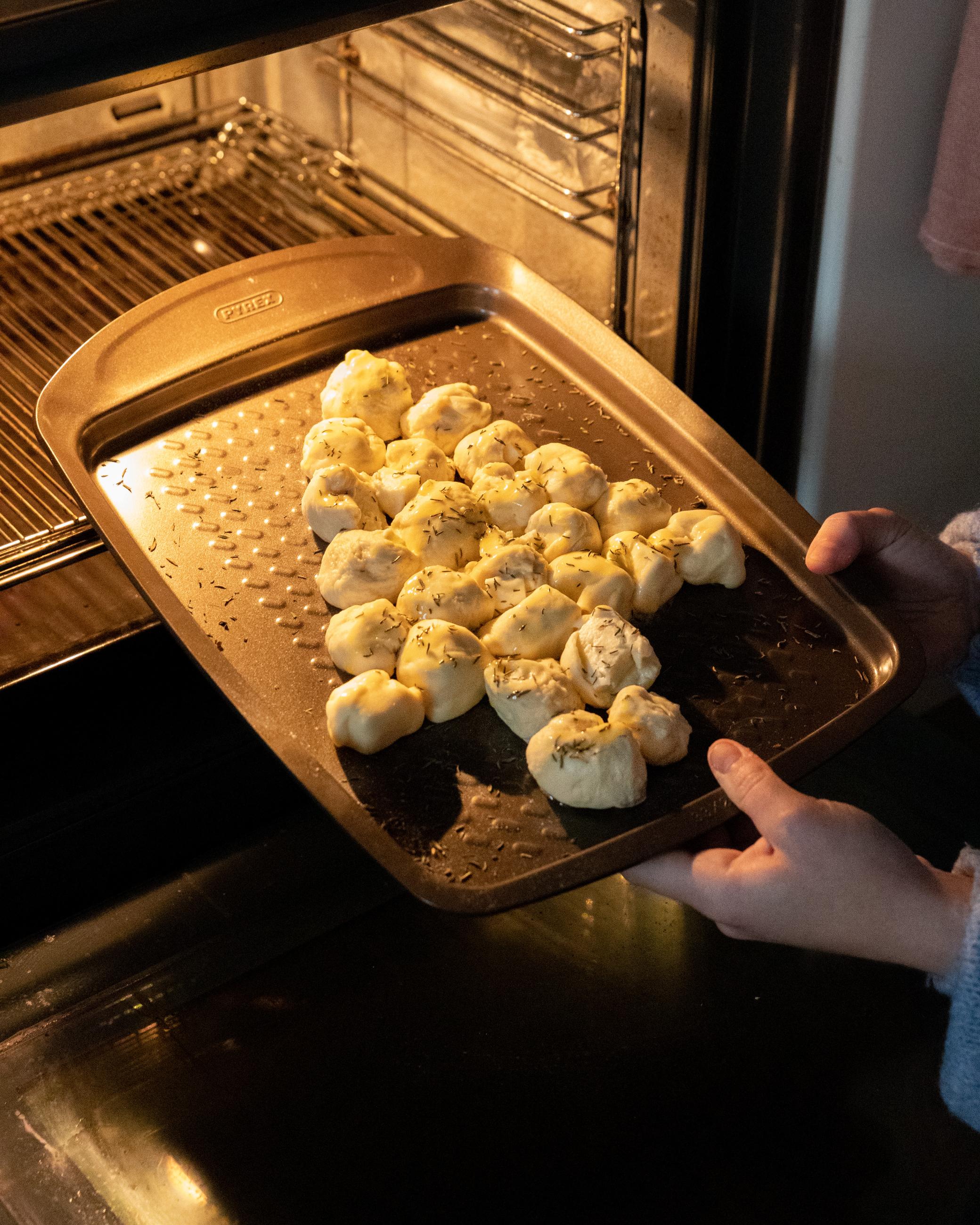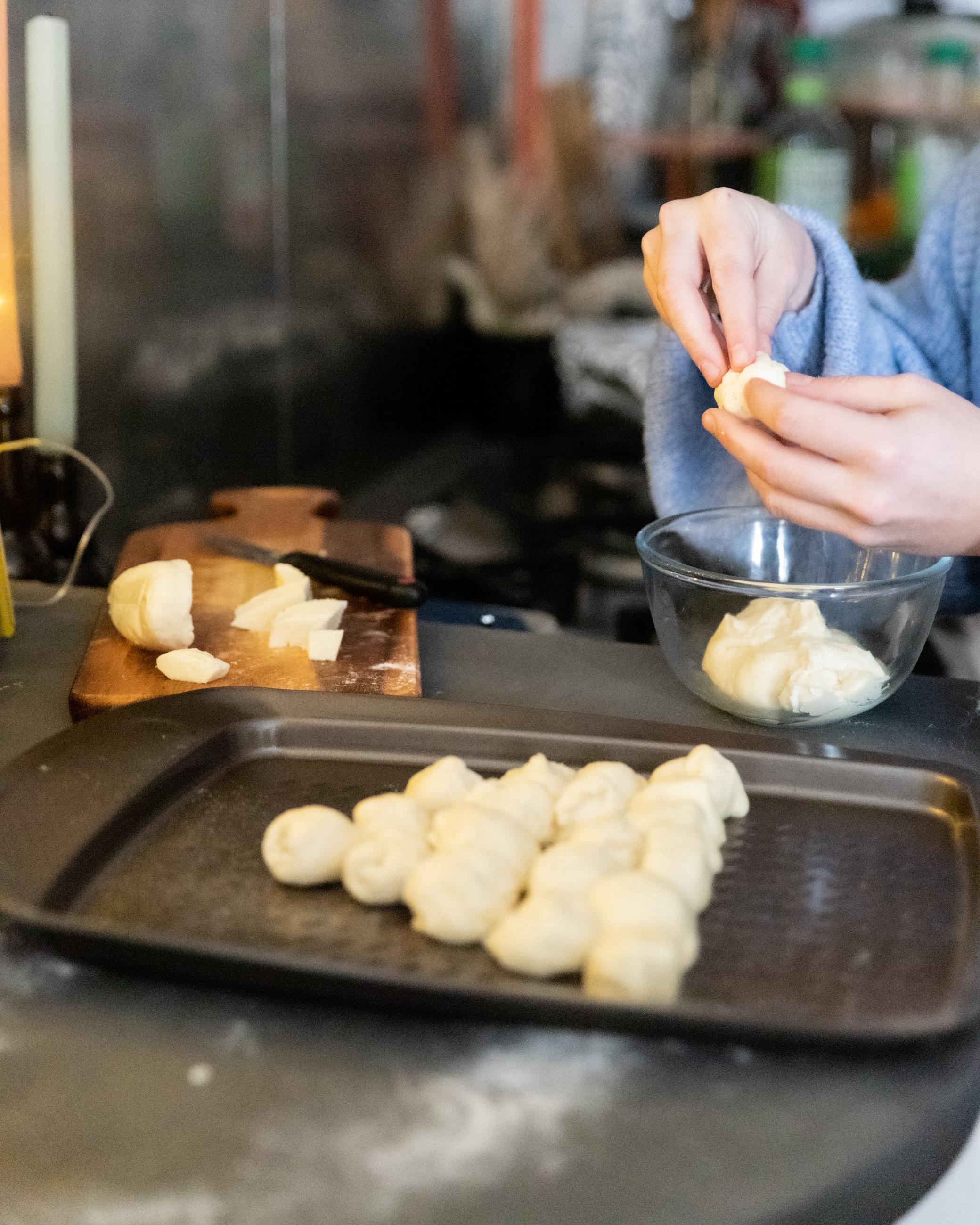 Roll them onto the baking tray to form a ring, pinching the ends to join them. Tuck the trinket under the cake, cover and leave to rest for 1 hour, until doubled in volume. Heat the oven to 190C/fan 170C/gas 5.