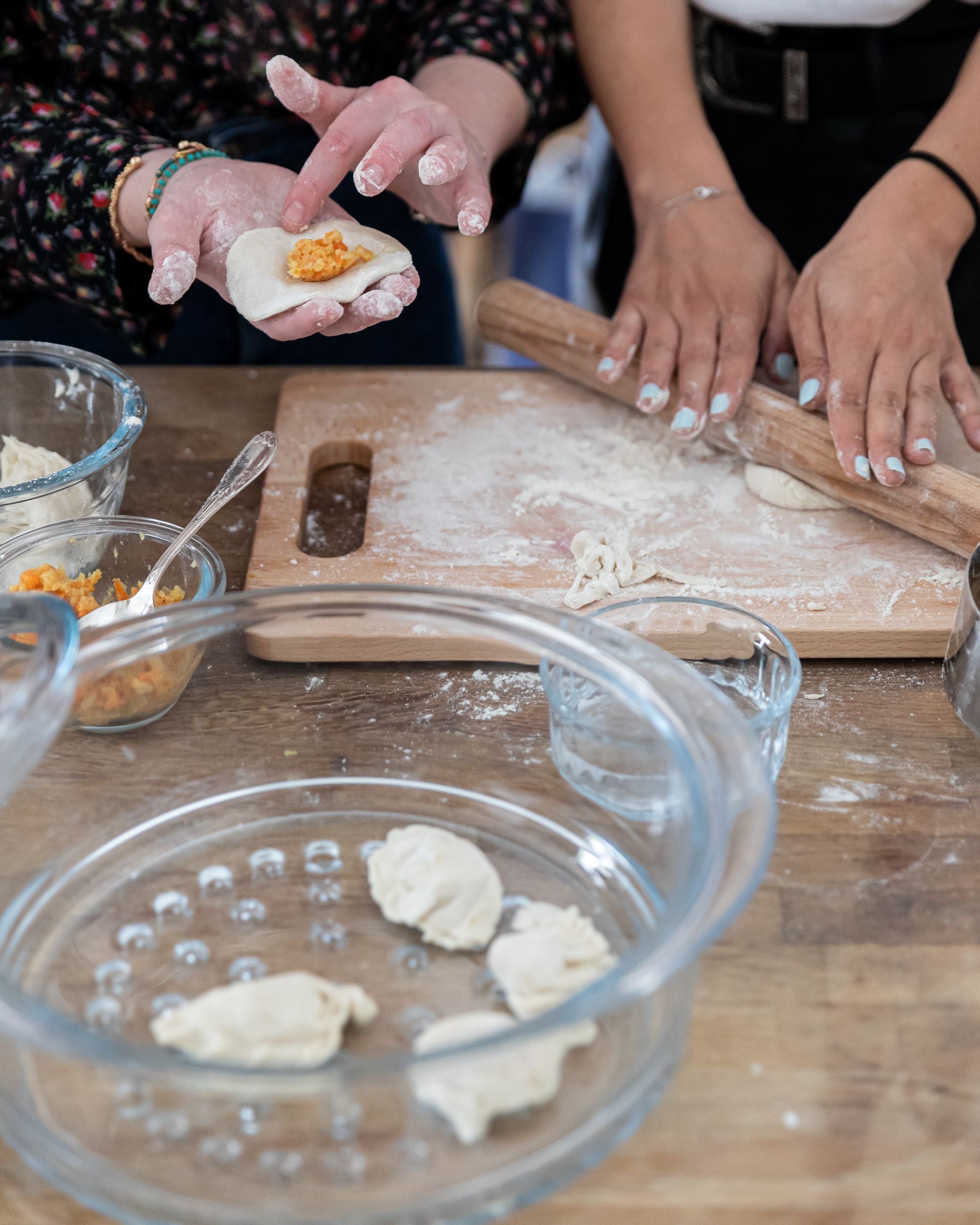 Trim the green parts of the leeks (the greens can be used in a soup) and cut the white parts of the leeks in half.